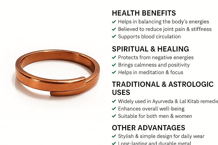 • jewelquick Designed by pure anti-allergy, skin safe, copper Ring; Adjustable to fit any Finger Size